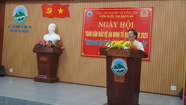 Đồng chí Nguyễn Vũ Linh, giám đốc VQG Bạch Mã phát biểu tại Ngày hội